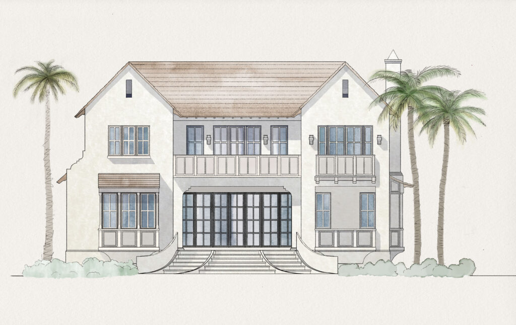This five-bedroom unit was the first of our Cape Dutch-inspired custom homes. With its graceful lines, reminiscent also of Bermudian architecture, we bring an island vibe back to Miami. These homes are a much-needed departure from the clumsy Key West imitations, dreaded Florida faux Mediterranean and ill-proportioned contemporaries. Hampton House is a beautiful, architect-designed custom home offering gas lanterns, open-plan living, and a large kitchen with a banquette overlooking the garden. The pool creates a dramatic connection between the covered terrace and the summer kitchen. The primary bedroom has its own wing. It features an upstairs family room, a large open terrace, and ample family bedrooms.